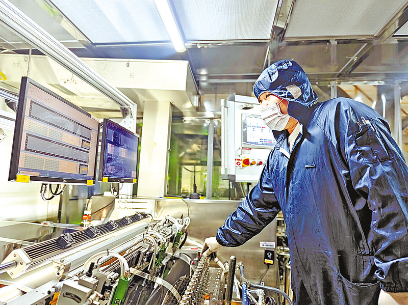 当日上午,记者走进该公司二期生产车间,一幅繁忙有序的生产图景跃然眼前:生产线上机械臂精准运转,工人各司其职,有条不紊,一块块规格统一的产品被迅速转运至下一道工序。“车间日产量稳定在15000至16000块,产品质量和产能均处于行业领先水平。”制片车间生产主管朱波介绍,当前车间正开足马力满负荷生产,全力保障订单供应。