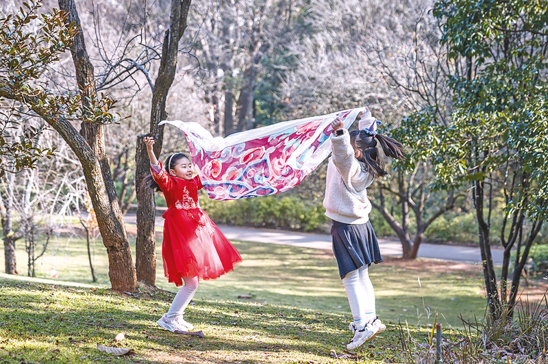 1月10日,小朋友在昆明植物园内玩耍。新华社记者 王冠森/摄