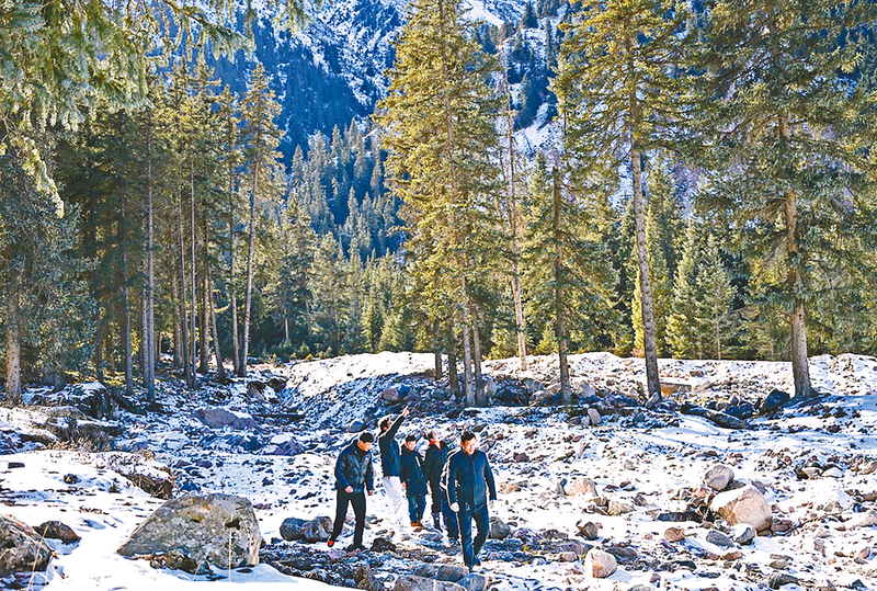 1月10日,游客在青海省海北藏族自治州祁连县阿咪东索林海露营基地内徒步。 新华社记者 齐芷玥/摄