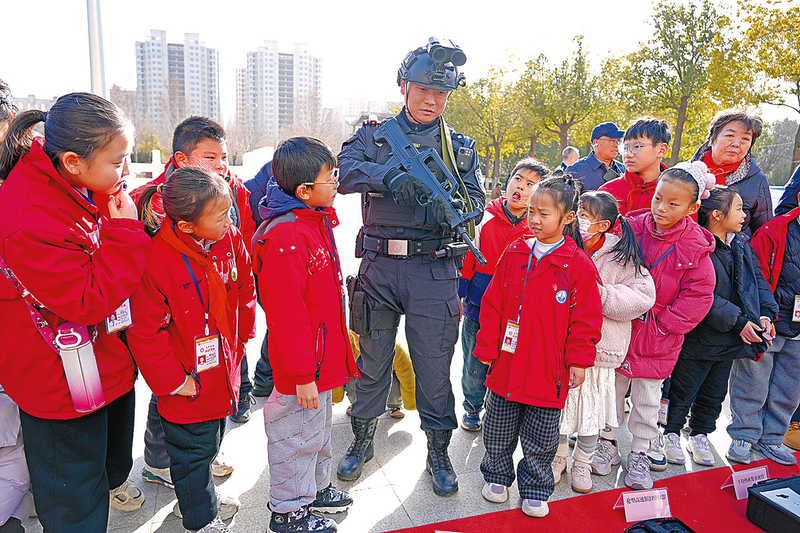特警装备展示区成为全场焦点。一些只能在电视上见到的专业装备整齐排列,特警队员逐一讲解其功能与使用场景,还邀请小记者们近距离触摸体验。禁毒小课堂上,民警通过仿真毒品模型,揭开了新型毒品的伪装面纱,并告诫小记者们要提高警惕,远离陌生人提供的食物和饮料。互动问答环节,小记者们积极举手抢答,在轻松氛围中筑牢禁毒心理防线。