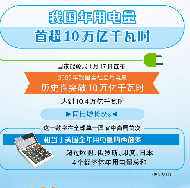 我国年用电量首超10万亿千瓦时