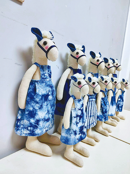 马年新春渐至,驻马店市梅氏传统植物染制工艺非遗代表性传承人梅东霞制作了萌态蓝印花布“生肖马”玩偶,让非遗蓝印花布印染技艺为新春佳节营造喜庆氛围。
