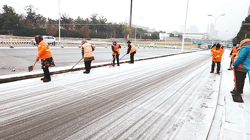 该局的14支应急队伍全员集结,500名环卫工作人员身着橙色工装,带着铁锹、扫帚等除雪工具,分赴辖区各重点路段、桥梁涵洞。与此同时,22台除雪运雪车辆投入作业。