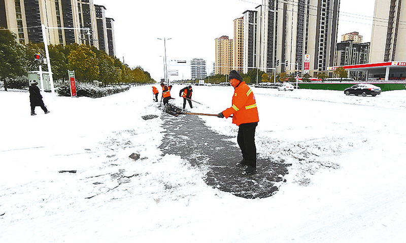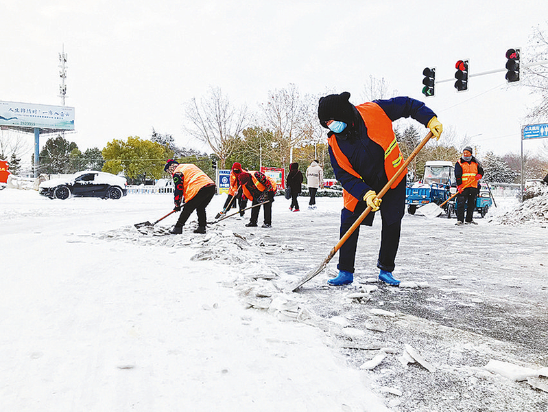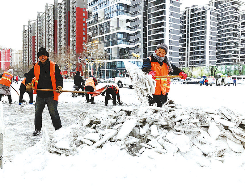 1月20日大雪初霁,天中大地银装素裹,城市的清雪保畅战即刻打响。环卫工人作为除雪主力军,第一时间整装出发、奔赴街头,手握推雪板、铁锨、清雪耙等工具全力奋战,清积雪、除薄冰、通道路,以坚守与担当筑牢城市出行安全防线。