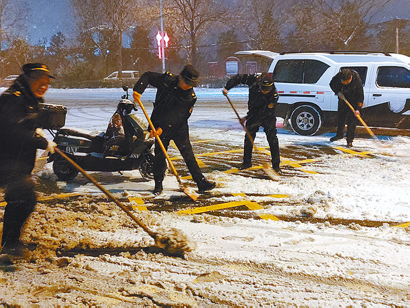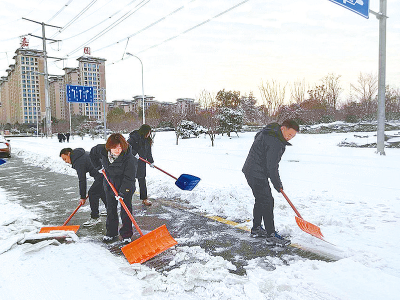 同时,开发区各部门、乡(街道)、村(社区)充分发挥基层党组织战斗堡垒作用,引领党员志愿者深入沿街路面、村(社区)主干路等重点区域,清雪除冰,全力保障居民出行安全。大家分工明确、配合默契、不畏严寒、干劲十足,有人挥锹铲雪,有人奋力推扫,有人细致清理边角积雪,忙碌的身影构成冬日里一道温暖的风景线。