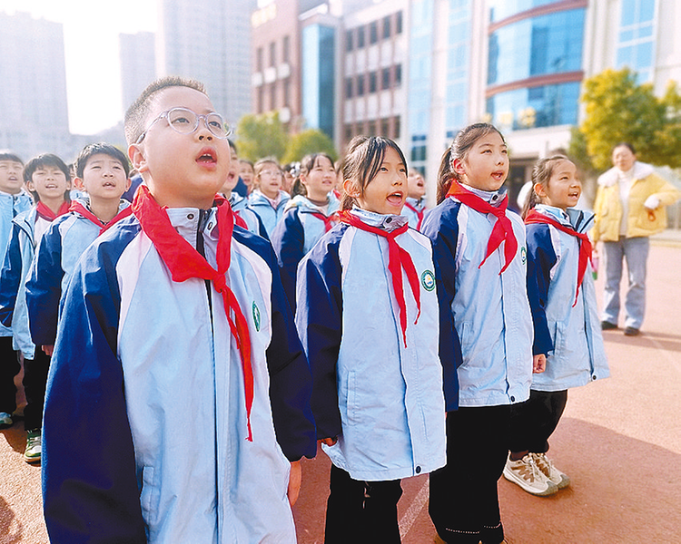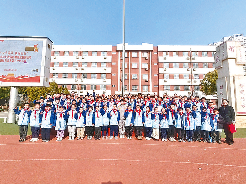 国防教育宣讲员带领大家重温历史 本报讯(文/图 全媒体记者 高琳琳)“少年智则国智,少年富则国富,少年强则国强,少年独立则国独立……”1月16日,驻马店市第三十六小学的操场上,一场主题鲜明、催人奋进的国防教育宣讲正在热烈开展。