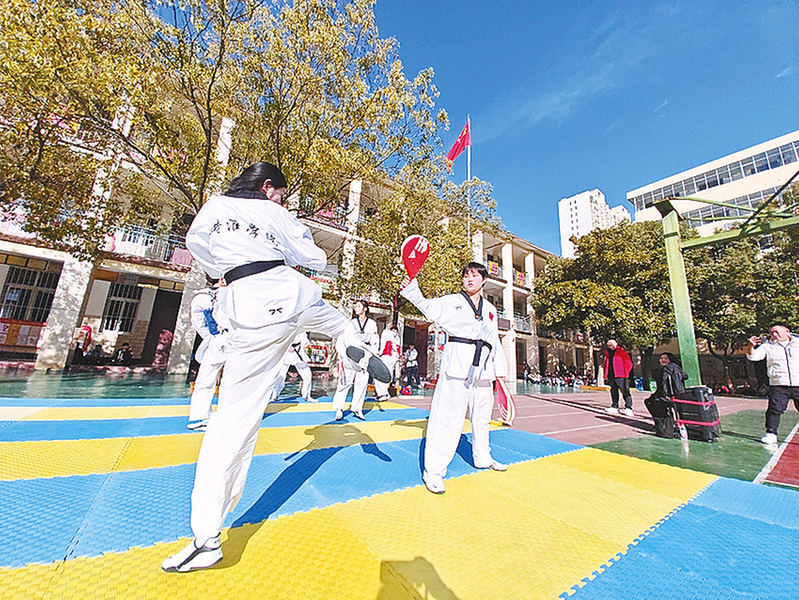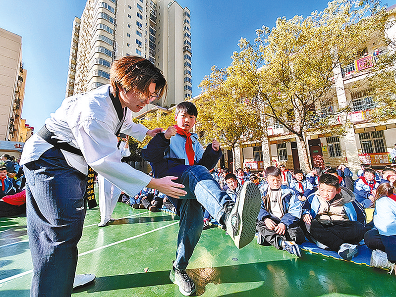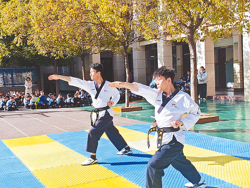 1月15日下午,由驻马店日报社精心策划的天中晚报小记者跆拳道课堂在驻马店市第三小学温馨启幕。黄淮学院跆拳道队的队员们与我市资深跆拳道教练员携手,为同学们带来了一场集观赏性、互动性与教育性于一体的特色课程,让孩子们在拳脚之间感受运动魅力,诠释青春风采。