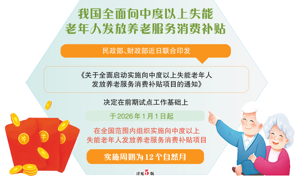 我国全面向中度以上失能老年人发放养老服务消费补贴