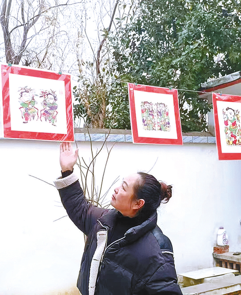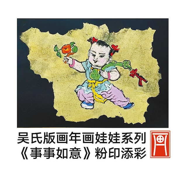 在工艺上,吴雪银推出“半印半画”的手法。先印出底稿,再手工添色,使画面更加细致、精美,有过渡色且层次丰富。她指着墙上一幅装框的《金玉满堂》版画向记者介绍:“这幅画人物中的眼睫毛是用毛笔一笔一笔画的,让人物更加传神、有韵味。”这种创新工艺深受消费者欢迎,为吴氏版画开辟了新的市场空间。