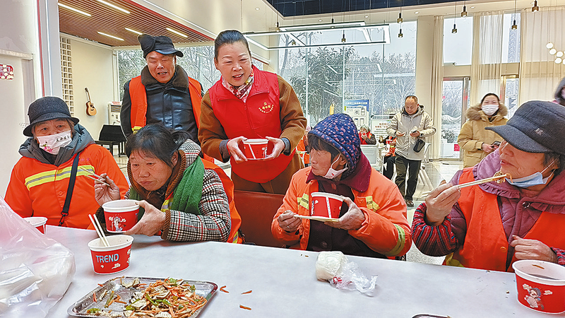 1月26日是腊八节。驿城区橡林街道民生社区“驿小驿”服务站里暖意融融,“驿小驿”志愿者携手老查记餐饮团队,在此开展“粥暖腊八爱心同行”活动,为辖区环卫工人送上热气腾腾的腊八粥与节日问候。