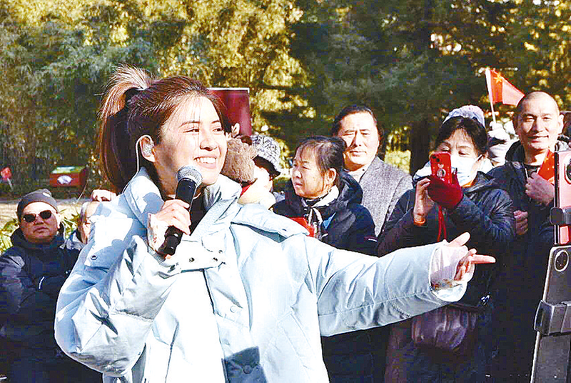 演唱现场人山人海 “姑娘,歇会儿再唱,天冷注意身体。”近日,驻马店90后歌手胡启越在北京公园里唱红歌走红,她不收门票,不拉赞助,扛着话筒,拉着音响,把舞台从专业剧场搬到了公园广场,收获不少观众掌声。