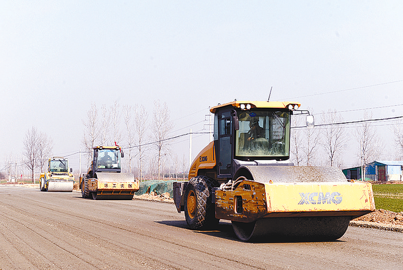 本报讯(文/图 全媒体记者 张勇通讯员 焦东)近日,记者在国道107驻马店境东移改建工程南段水泥稳定碎石施工现场看到,摊铺机在宽阔的路基上缓慢前进,留下平整的路面基层,多台压路机一遍遍对新铺路段进行压实,确保工程质量达标(如图)。