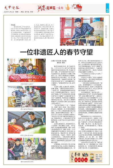 围炉共话的非遗年味 开栏语: 春潮涌动处,年味渐浓时。2026年农历马年新春的脚步悄然临近,神州大地张灯结彩,天中大地暖意融融。当团圆的钟声即将敲响,当新春的祝福传遍街巷,本报编辑记者再次奔赴基层一线,开启“新春走基层”活动。我们将锤炼脚力、眼力、脑力、笔力,用脚步丈量大地,用心灵感受时代,用真实的故事、鲜活的细节、温暖的笔触,定格天中大地的发展成就,记录千家万户的幸福瞬间,传递新春佳节的美好祝福,敬请广大读者关注,与我们一同在基层的烟火气中,感受时代的脉动,聆听春天的序曲。