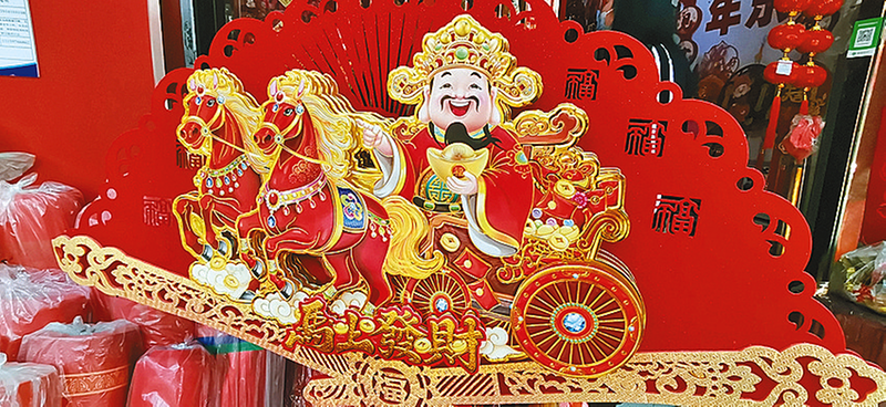 本报讯(文/图 全媒体记者 康国富)农历马年的脚步近了,市内多家超市的马年主题饰品迎来销售高峰,红包、挂件、年画等马年主题元素商品(如图)琳琅满目,市民选购热情高涨。