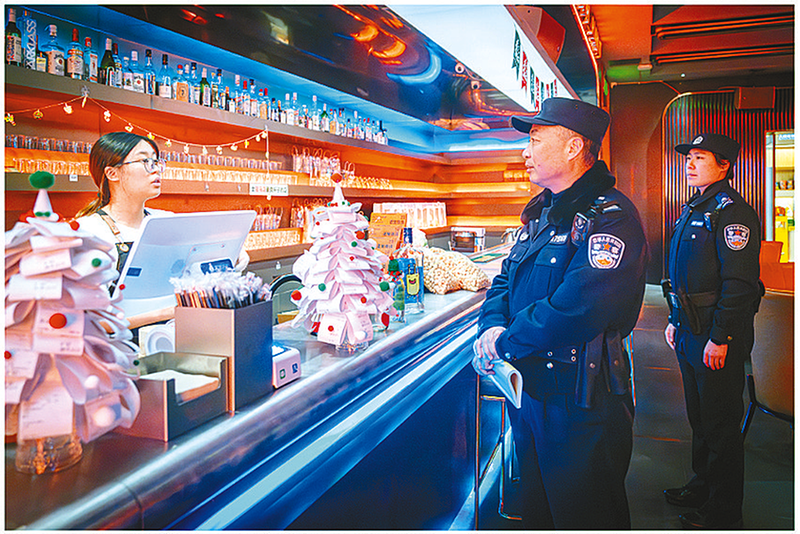 近日,开发区公安分局金河派出所民警对辖区酒吧、KTV等娱乐场所开展集中清查整治,重点检查消防设施、安全通道及实名登记落实情况,增强安全意识,筑牢安全防线。