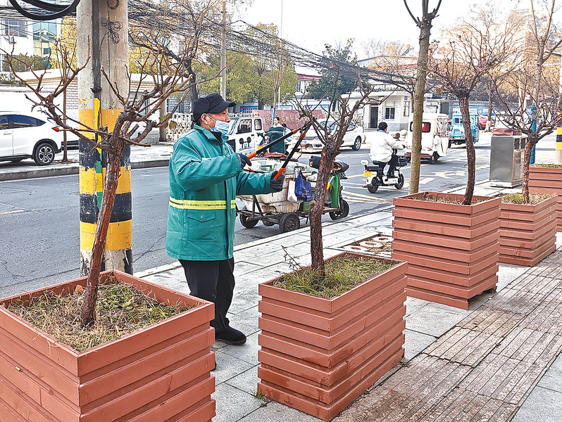作业过程中,园林工人严格遵循技术规范,熟练而有序地忙碌着。结合道路绿化特点,在充分保障交通顺畅的前提下,园林工人重点对月季植株上的病枯枝、过长枝条等进行了精细修剪,并及时清运枝条,保持路面干净整洁。