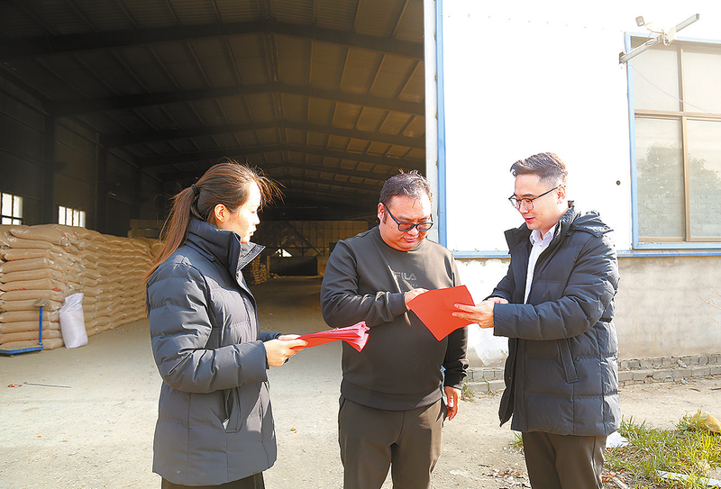 工行驻马店分行解放路支行工作人员上门服务客户。 本报讯(文/图 全媒体记者 李小龙 见习记者 杨同山)近日,工行驻马店分行相关负责人一行前往驿城区朱古洞乡,对已获得普惠金融授信的收粮大户张鹏飞进行走访调研,就经营情况、融资需求、上下游潜在客户与其进行深入交流。工行驻马店分行解放路支行作为具体业务对接单位,安排相关人员陪同调研。