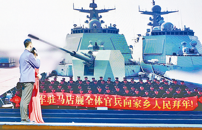 驻马店舰全体官兵向家乡人民拜年 (全媒体记者 谭啸)