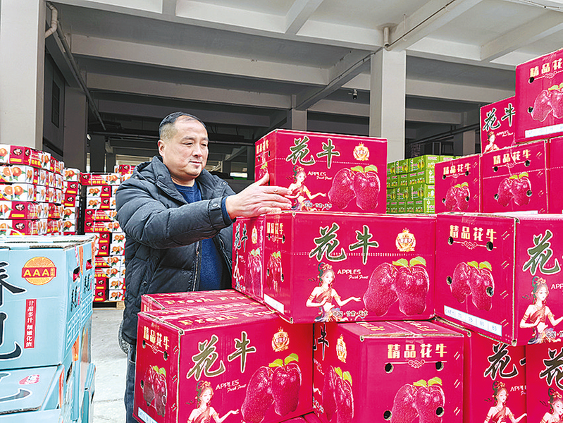 线下市场购销两旺,线上渠道销量同样可观。市场内的打包区,工人们正忙着分拣、装箱、打包,忙碌而有序。商户赵龙告诉记者,精致的水果礼盒在各大电商平台上销量持续走高,成为线上年货采购的热门选择。