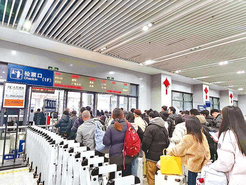 当日上午10时许,记者在驻马店火车站候车大厅看到,检票口、进站通道、服务台前客流明显增多。背着行囊的务工人员、拎着行李的返校学生、携家人出行的返程旅客络绎不绝,大家带着新春祝福,奔赴工作与学习岗位(如图)。车站“驿路温馨”服务台增派人员值守,提供问询引导、重点旅客帮扶、遗失物品查找等便民服务;志愿者在扶梯、闸机、候车区等关键点位疏导人流,协助旅客快速进站。