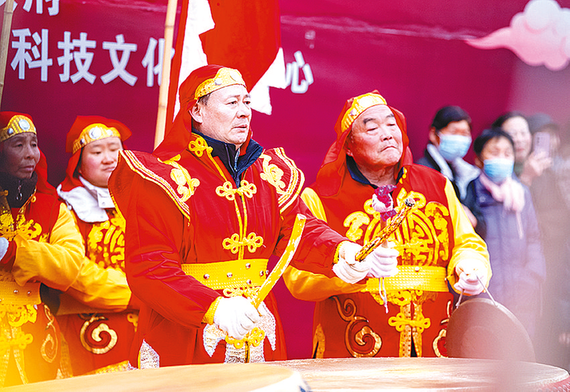展演现场,非遗传承人们各展其能,将传统技艺演绎得淋漓尽致。掌鼓者以边鼓为令,身姿灵动、步伐矫健,腾挪跳跃间鼓槌翻飞,每一个动作都精准把控着节奏韵律。铙镲队配合默契,时而沉稳对击、时而铿锵闷击,传、撂、翻等绝技次第上演,队形随音律不断变换,金器相击的铿锵之声与整齐划一的表演相得益彰,尽显宏大阵势与磅礴气势。