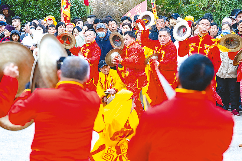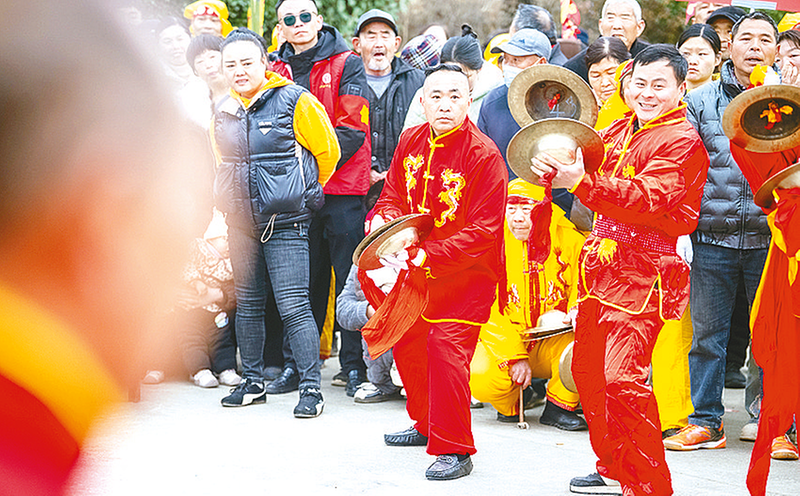 围观群众里三层外三层,掌声、喝彩声与铜器声交织在一起。大家纷纷拿出手机记录精彩瞬间,沉浸式感受着传统民俗的独特魅力。现场年味浓郁,热闹非凡。
