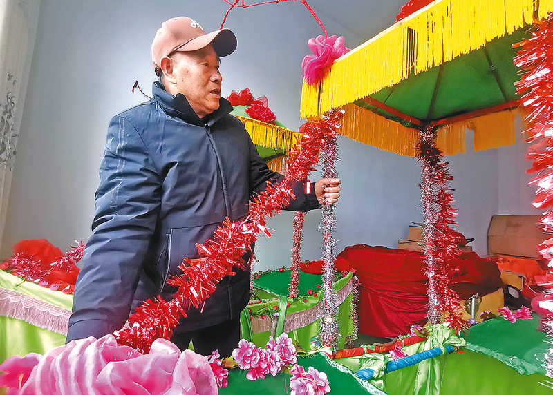丁保全家中摆满了演出用的道具,如旱船、锣鼓等,上面都盖着防尘的被单。拉开窗帘,冬日暖阳投在这些五彩斑斓的道具上,在沉睡许久之后,它们将再次迎来与表演者的相遇。
