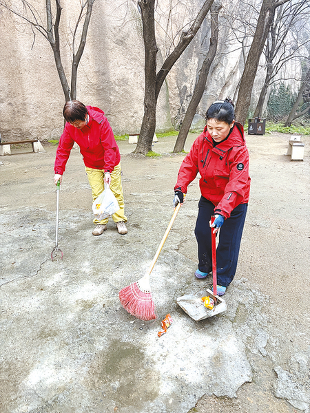 活动现场,志愿者们手持垃圾夹、垃圾袋等,在景区道路、林间步道、观景平台进行清洁。大家对塑料袋、饮料瓶、纸屑、烟头等生活垃圾进行全面清理,用双手为景区“除尘焕新”。忙碌的身影穿梭于青山绿水间,成为春日里一道温暖的风景线(如图)。不少游客受到感染,主动加入环保队伍。经过一上午奋战,共清理各类垃圾数十袋,景区环境卫生得到明显改善。