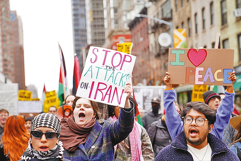 自美国和以色列2月28日对伊朗发动军事打击以来,美国民众持续在华盛顿、纽约和洛杉矶等多个城市举行抗议活动。