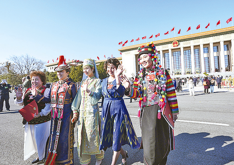 3月11日上午,中国人民政治协商会议第十四届全国委员会第四次会议在北京人民大会堂闭幕。这是闭幕会后,委员们走出人民大会堂。(新华社记者王曦/摄)