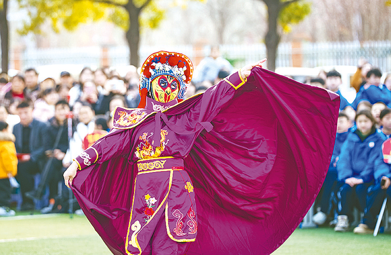 “犟驴”表演者大汗淋漓,使尽浑身解数,只为博学生“一笑”。川剧变脸艺人衣袖翻飞,红蓝黄绿脸谱瞬间变换,让学子们惊叹不已……