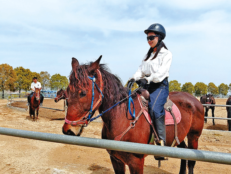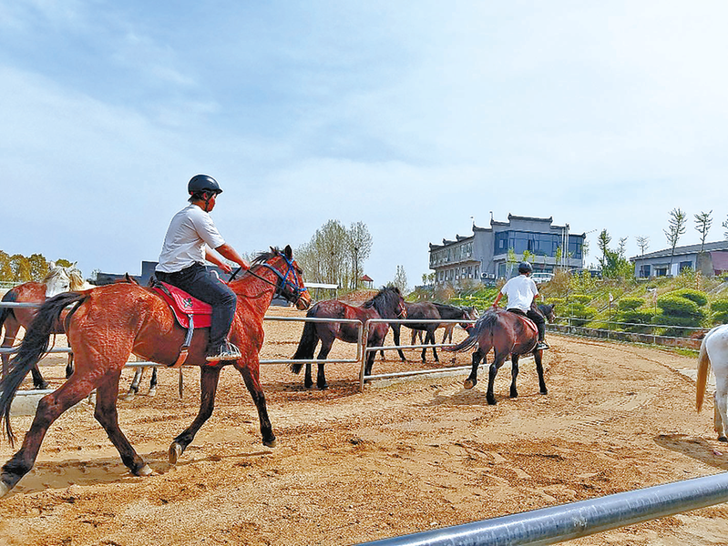 4月2日,记者在确山县老乐山风景区脚下的乐山驿站看到,宽阔平坦的跑马场内,十几匹马在悠闲地站立着,几名骑士或跃跃欲试,或策马奔驰,享受着骑马的乐趣。