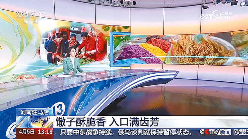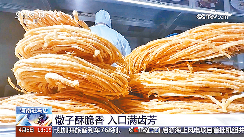 4月5日,CCTV-13《新闻直播间》关注河南驻马店:馓子酥脆香,入口满齿芳。(视频截图)