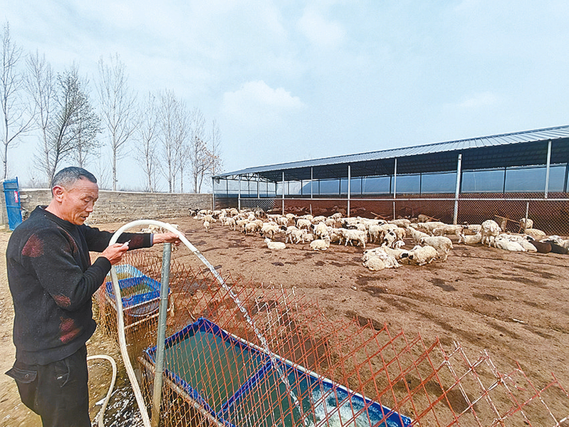 春日的乡村处处涌动着发展的生机,近日,记者走进确山县石滚河镇小谢庄,刚进村口就听到阵阵羊叫声。循着声音望去,只见村民谢连义正在自家4亩多的饲养场里忙碌,为羊群添加饮水、打理圈舍,动作行云流水,尽显十多年养羊老手的娴熟。