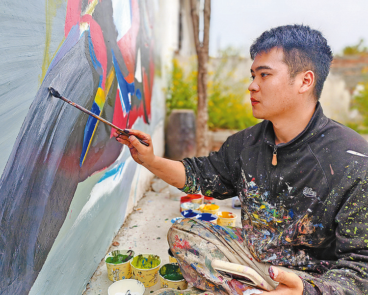 这位来自泌阳县的年轻画师,凭着一腔热爱与善意,把单调的墙面变成一幅幅生动的画作,用艺术为家乡增添温暖与亮色,也用公益之心点亮了乡村的每一角落。